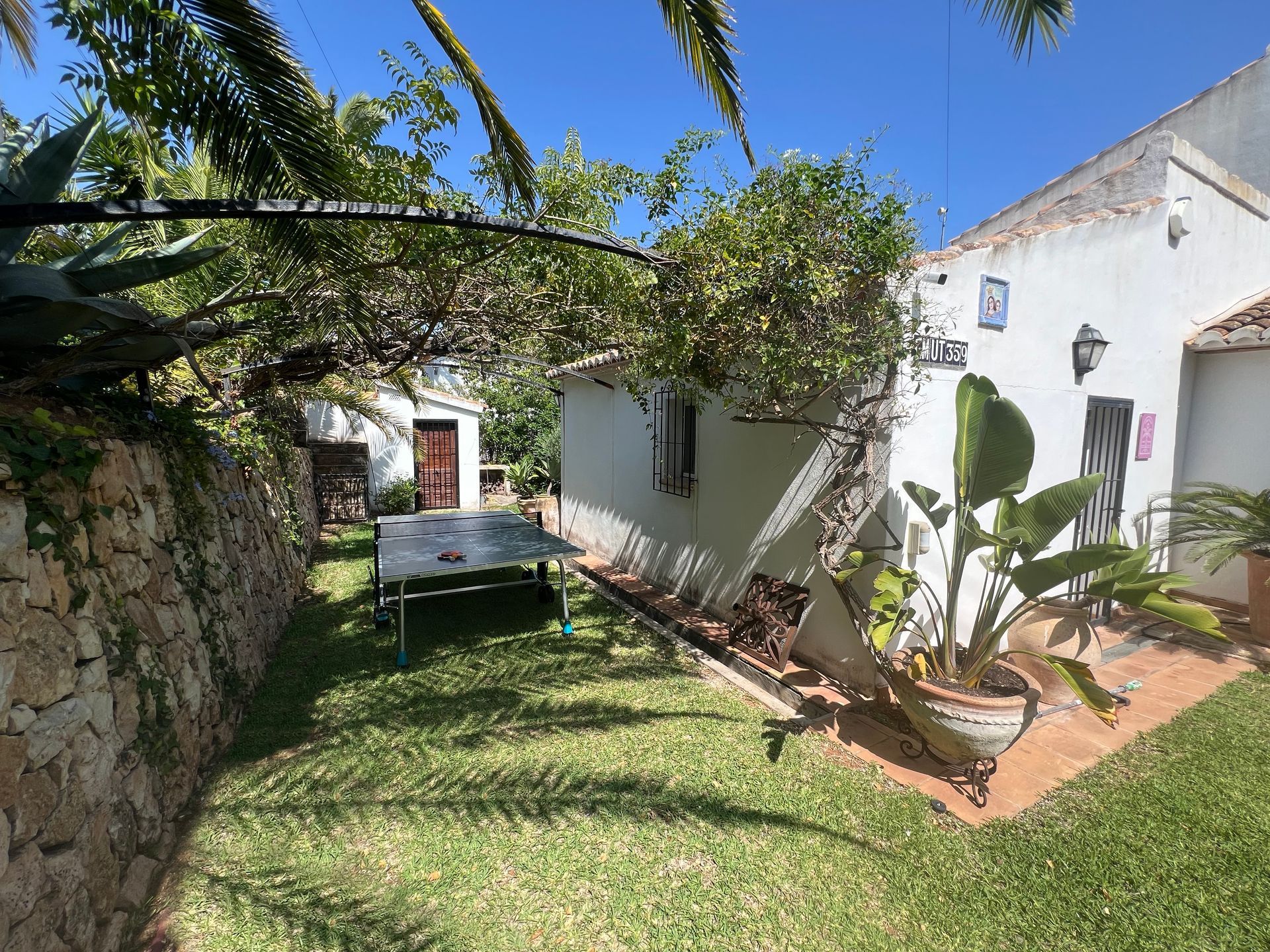De weelderige tuin rondom Villa Fave straalt een vrij en tropisch karakter uit. Met mooie palmbomen, bananenbomen die echt bananen dragen, sinaasappelbomen en een citroenboom, biedt de natuurlijke omgeving van de villa een aangename sfeer. Verspreid over het terrein zijn verschillende zitjes te vinden, zodat gasten altijd een comfortabel plekje kunnen vinden, of ze nu de voorkeur geven aan wat schaduw naast de keuken of willen ontspannen bij het zwembad op een van de ligbedden.