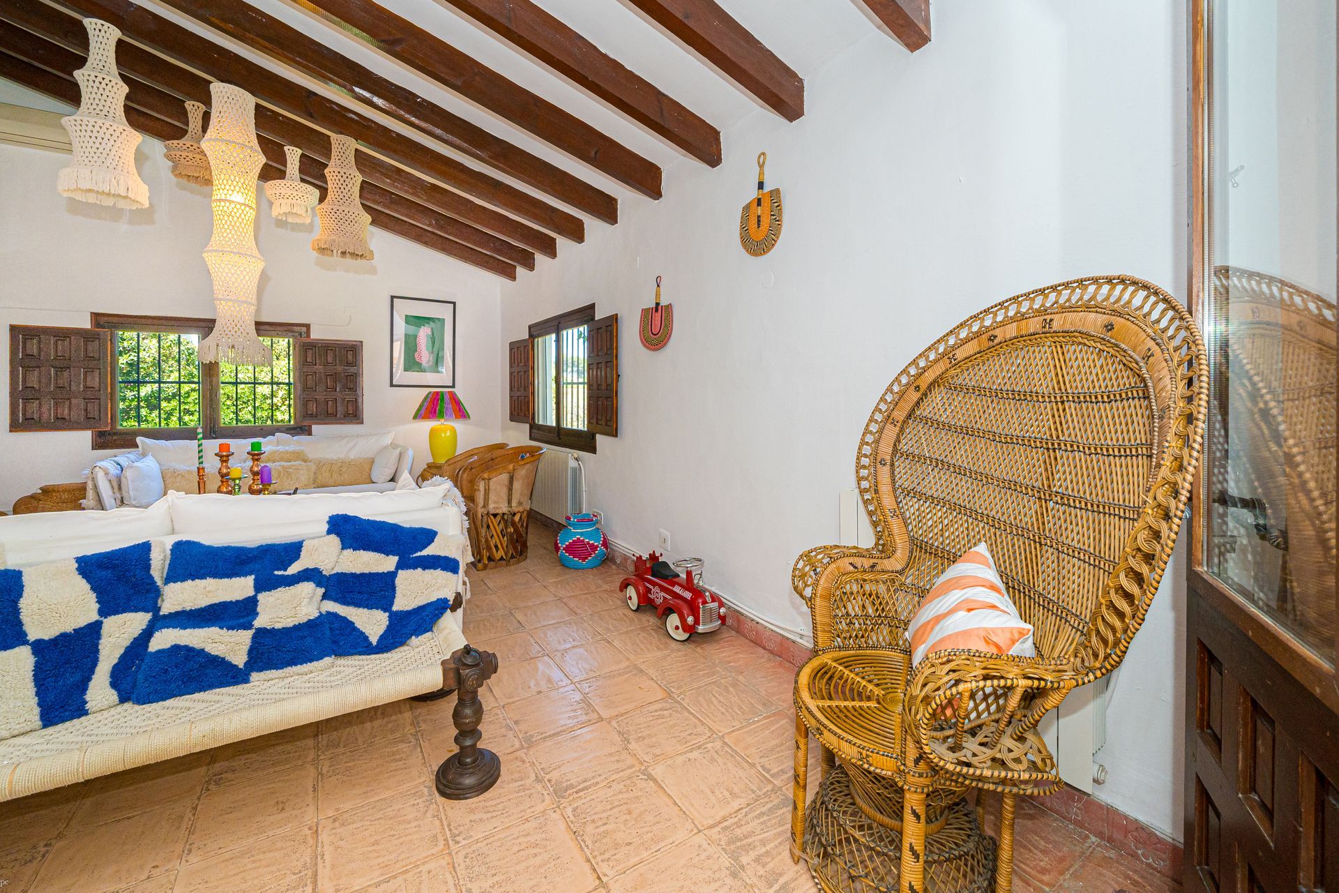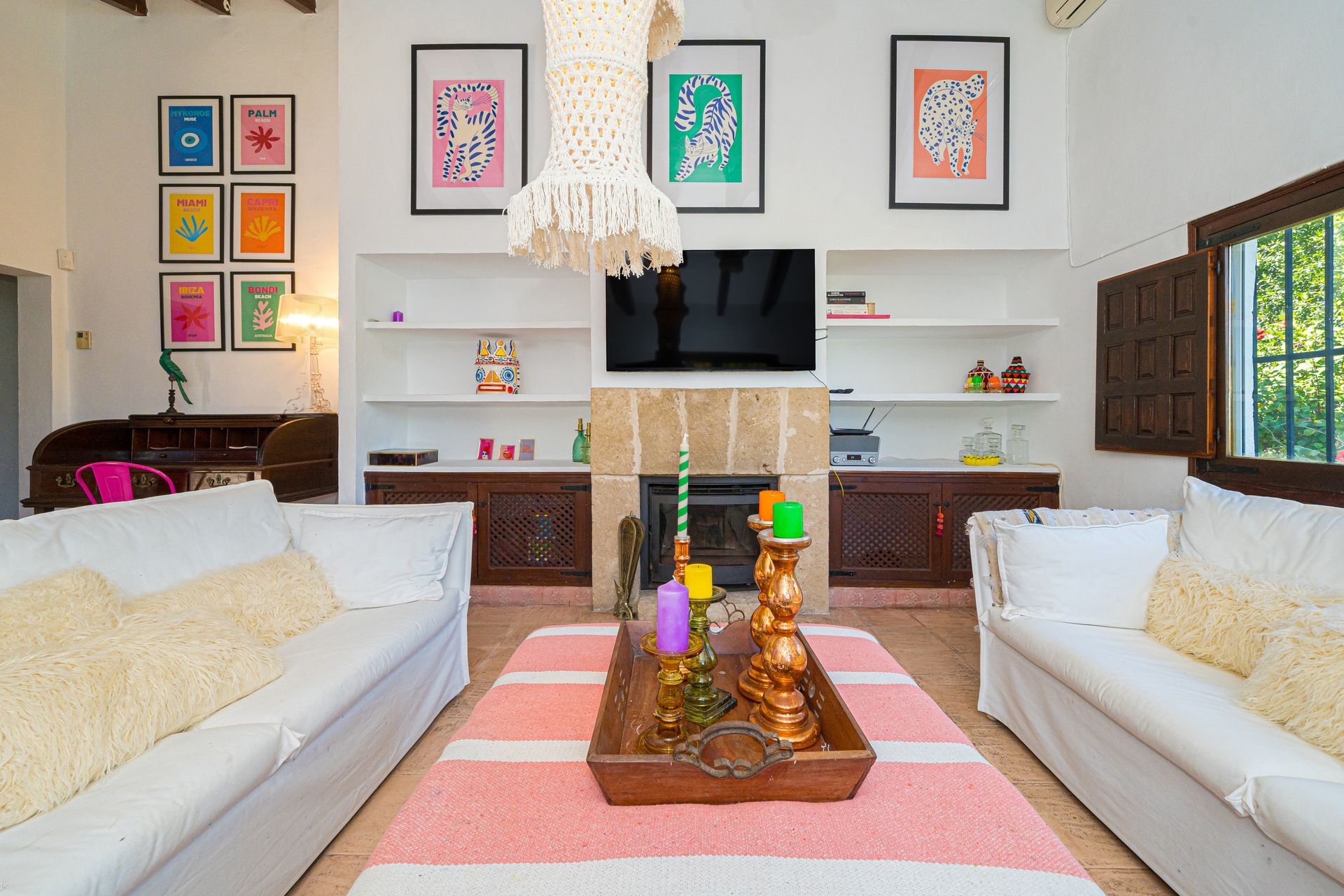 La chimenea es el centro de la sala de estar, con el televisor de 50 pulgadas colgando sutilmente encima. Además de los dos sofás para tres personas, los 2 sillones mexicanos completan la zona de estar. Además de la zona de estar principal, también podrá relajarse en la silla de ratán estilo pavo real o en el sofá cama tejido. La silla de oficina de color rosa brillante sirve para cualquier tarjeta navideña que deba escribirse.